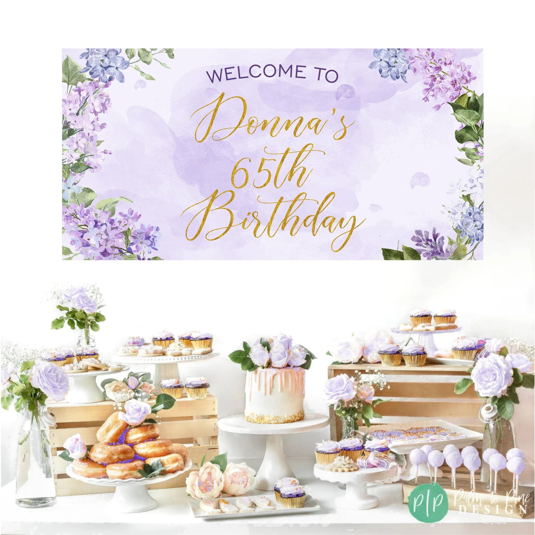 This lilac happy birthday banner in purple and gold watercolor is perfect for celebrating a birthday, baby shower or bridal shower! This feminine purple and gold lilac Happy Birthday Banner is the perfect way to use behind a dessert table, in your entryway or yard! I can personalize this banner for any event!