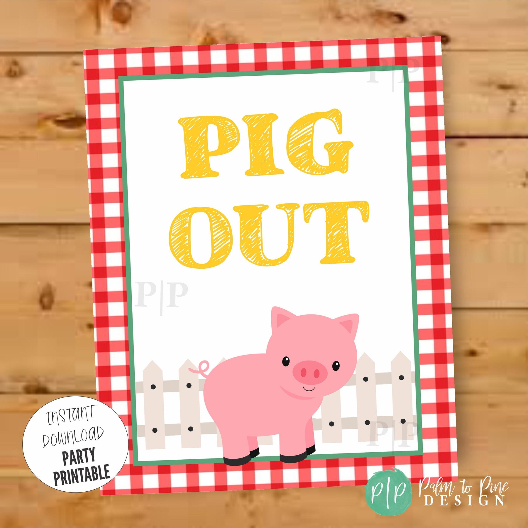 Pig Out Sign Farm Birthday Decorations, Barnyard Party Printable Sign, Instant Download Farm Animal Party Sign, Farm Barnyard Party Decor