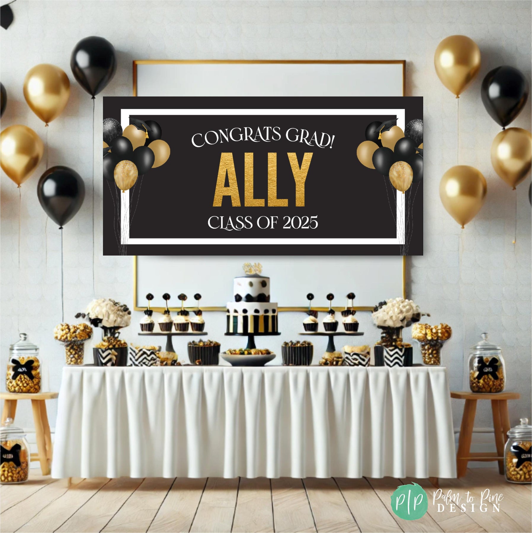 Make your grads day special with a personalized banner that’s as unique as they are! This customized graduation party banner is the perfect way to show off your grad’s hard-earned accomplishments. The colors & wording on this graduation banner can be customized with any colors and wording, just include your request in your notes to seller section at checkout! This graduation backdrop would look perfect hanging outside your home, in your yard, behind a dessert table or even hanging in the halls of your school celebrating your 2025 graduates!