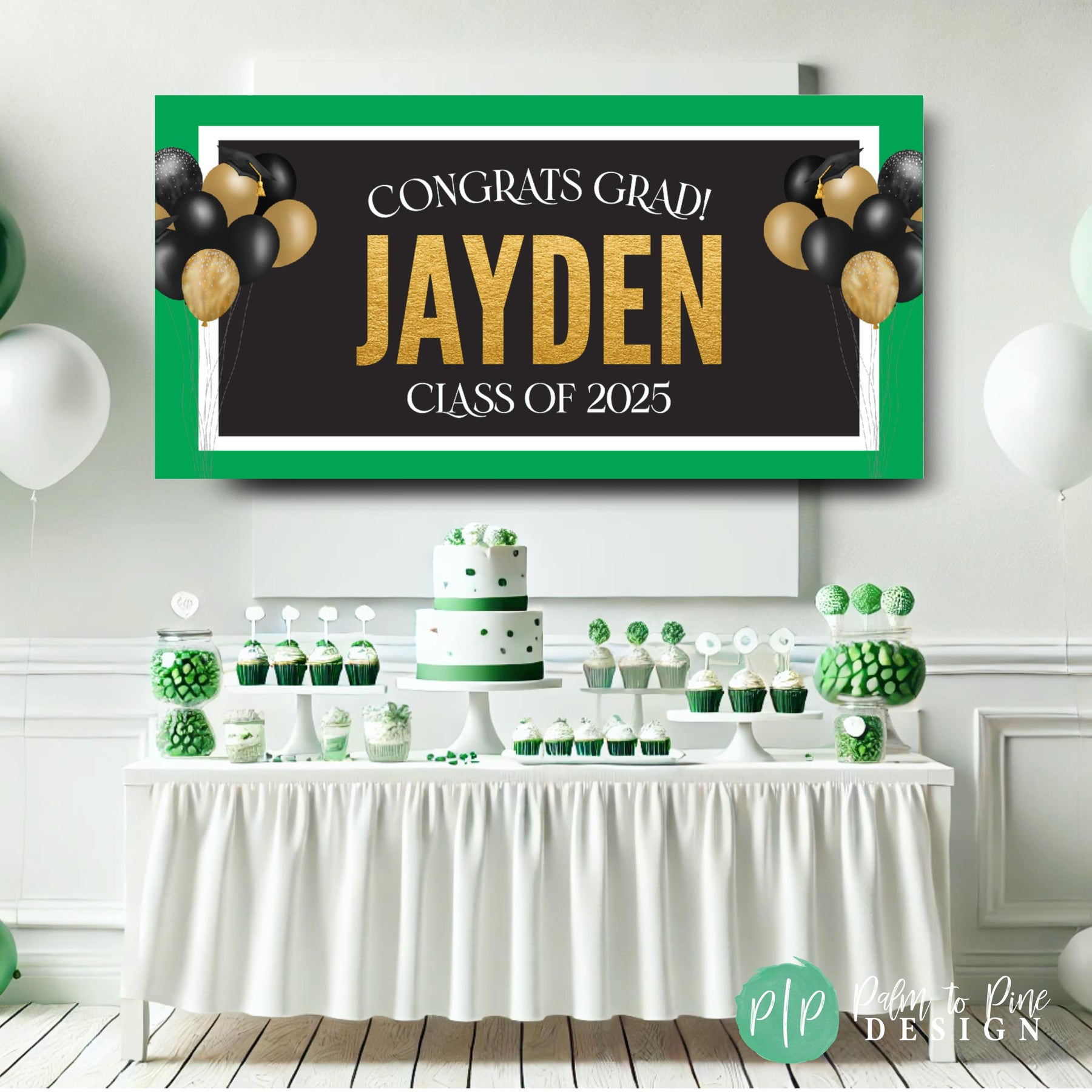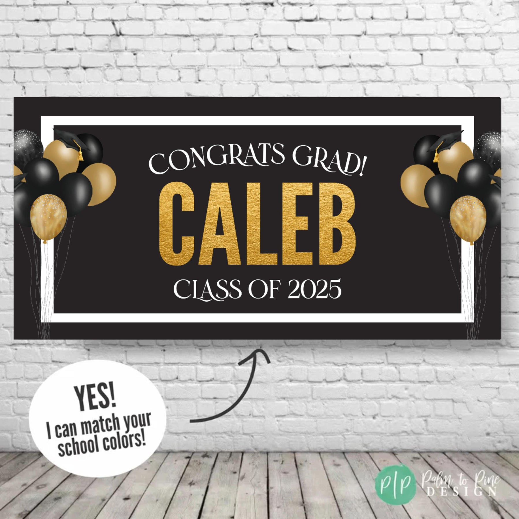 SPECS: The banner comes in two finishes, digital or printed. The printed banner is sized as an 18x36", 24x48", 30x60" or 36"x66", 42x84" or 48x96 and professionally printed on durable 13 oz scrim vinyl (this is a waterproof, super thick and highly durable banner that really makes a WOW statement at your graduation party and can be used for multiple events and a yard sign!)