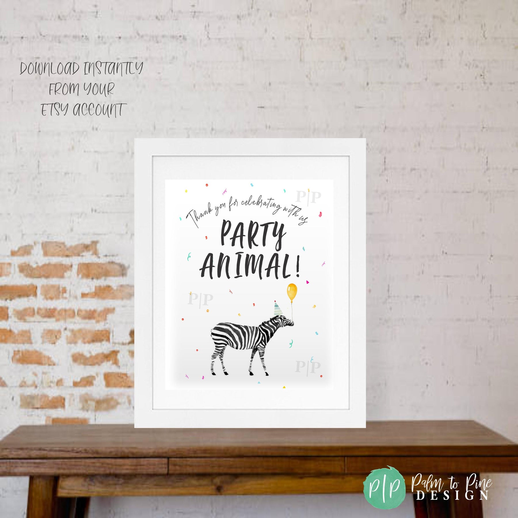 Bring the wild fun to your kids birthday party with this “Thank You for Celebrating With Us, Party Animal” sign! The cute watercolor zebra in a party hat surrounded by colorful confetti makes this instant download printable sign the perfect finishing touch for your jungle, safari, or Party Animal birthday theme. Use it on your favor table, dessert station, or guest exit for a cohesive party style. Simply download, print, and display — no waiting, no shipping. Coordinates perfectly with the rest of my Party Animal Jungle collection for a fun and unified celebration look.