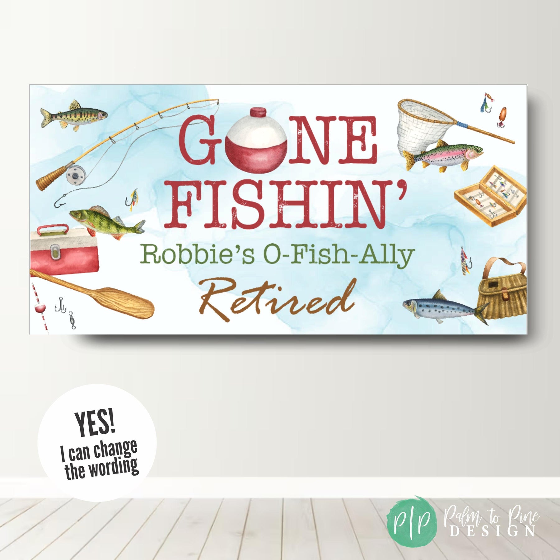 Gone Fishing Retirement Banner with O-Fish-Ally retired theme for fisherman